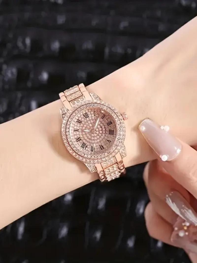 Elegant Rhinestone Decorated Quartz Watch & Bracelet
